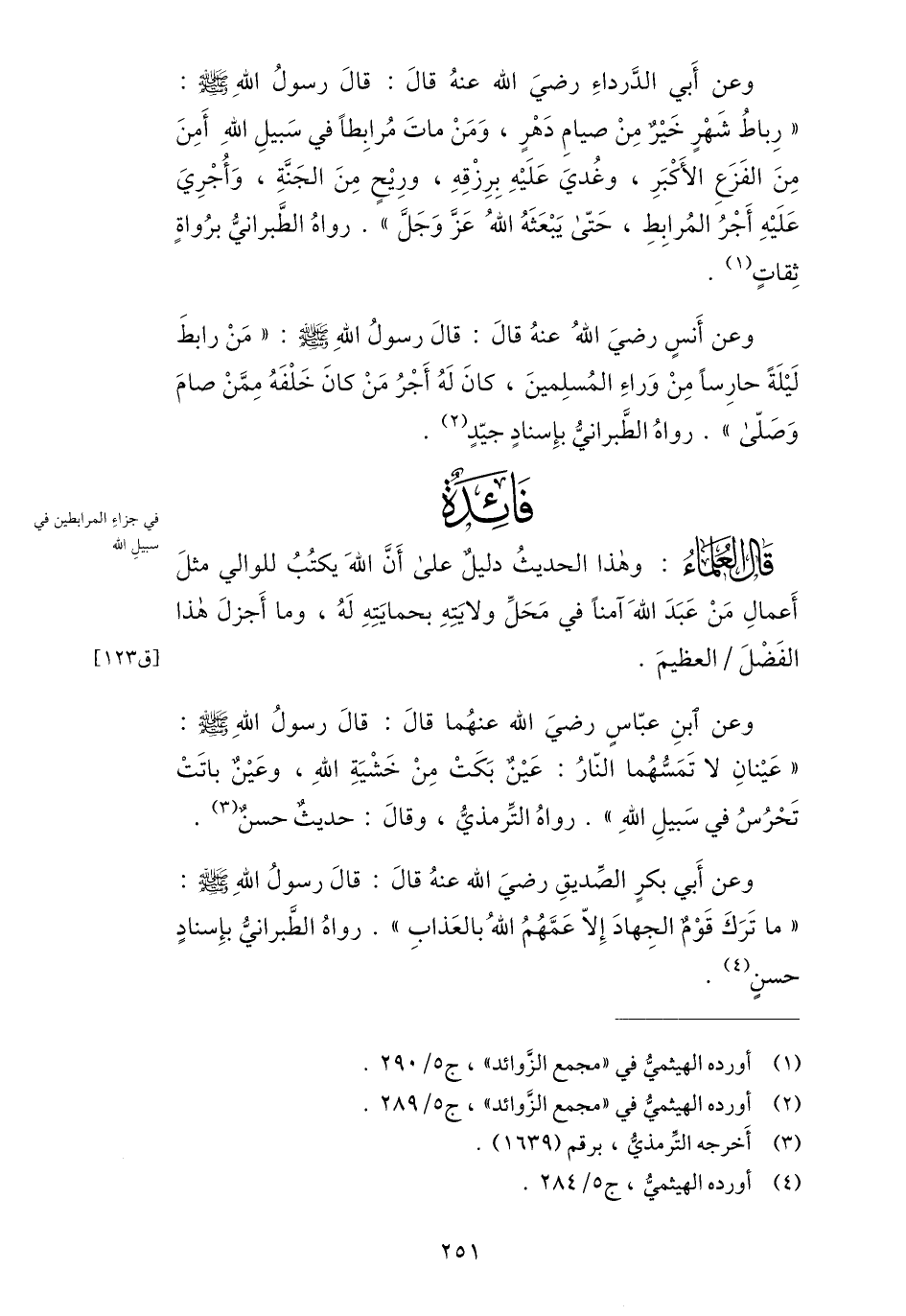 فائدة [: في جزاء المرابطين في سبيل الله]