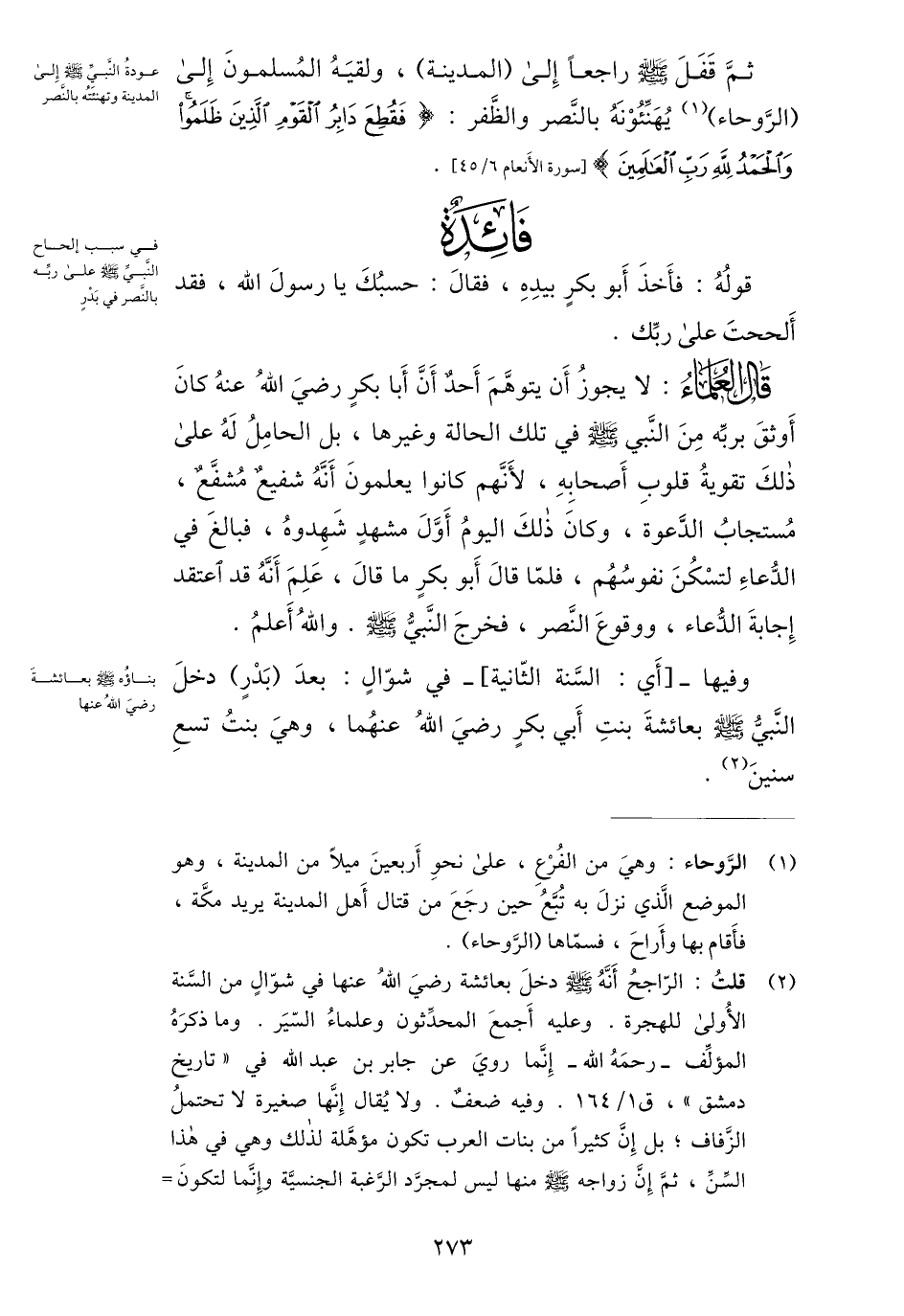 ثمّ قفل صلى الله عليه وسلم راجعا إلى (المدينة) ، ولقيه المسلمون إلى (الرّوحاء) «1» يهنّئونه بالنّصر والظّفر: فَقُطِعَ دابِرُ الْقَوْمِ الَّذِينَ ظَلَمُوا وَالْحَمْدُ لِلَّهِ رَبِّ الْعالَمِينَ [سورة الأنعام 6/ 45] .