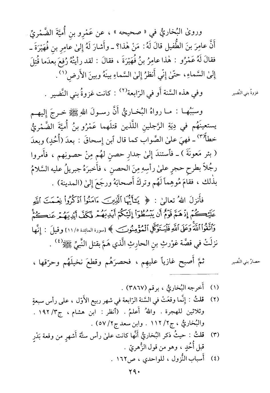 (2) قلت: إنّما وقعت في السّنة الرّابعة في شهر ربيع الأوّل، على رأس سبعة وثلاثين للهجرة. والله أعلم. (انظر: ابن هشام، ج 3/ 192. والبخاريّ، ج 2/ 112. وابن سعد ج 2/ 57) .