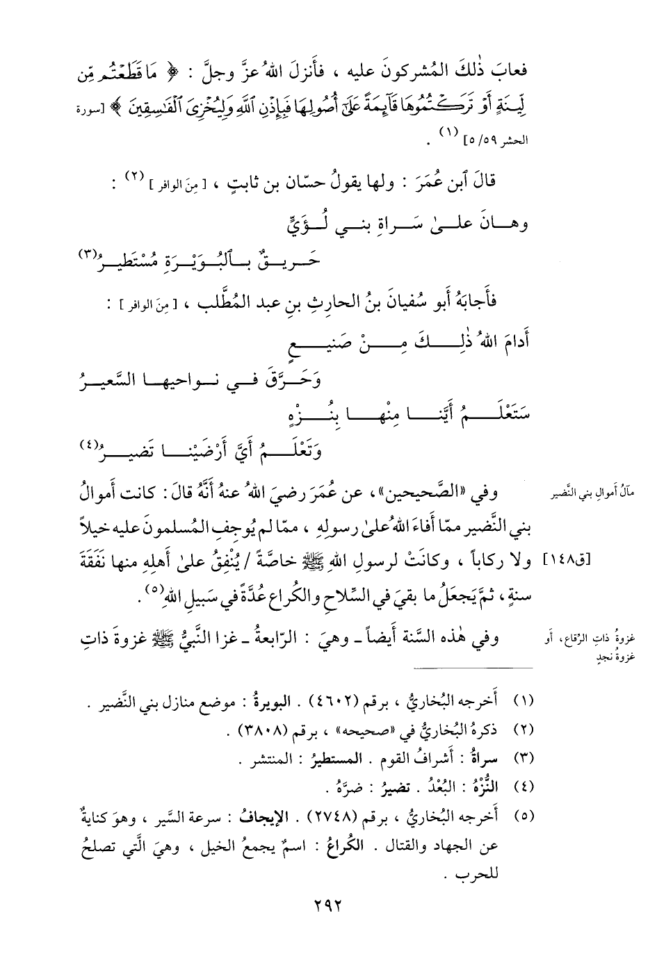 (1) أخرجه البخاريّ، برقم (4602) . البويرة: موضع منازل بني النّضير.