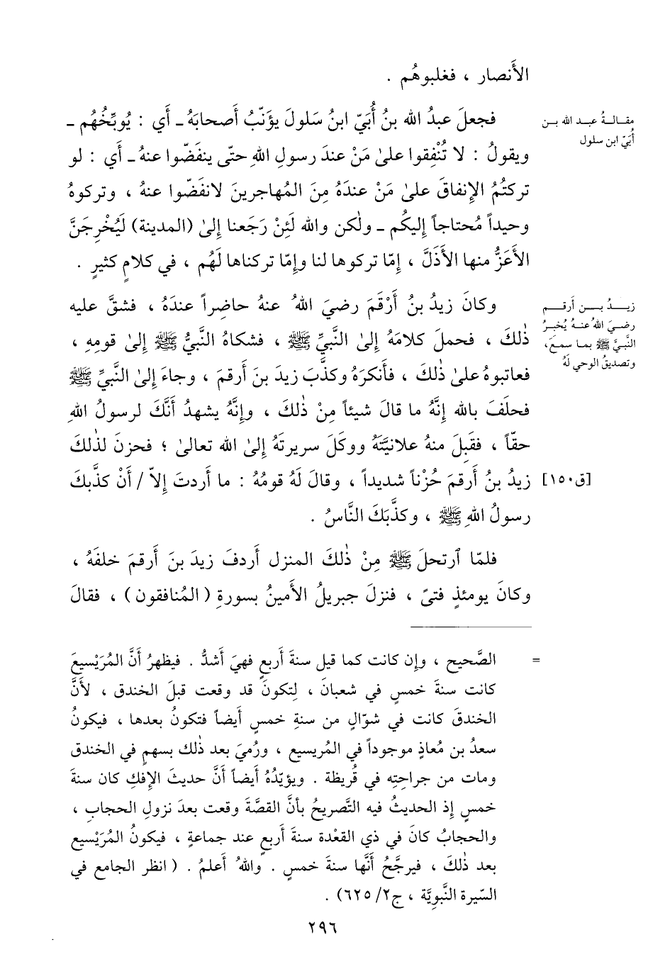 وكان زيد بن أرقم رضي الله عنه حاضرا عنده، فشقّ عليه ذلك، فحمل كلامه إلى النّبيّ صلى الله عليه وسلم، فشكاه النّبيّ صلى الله عليه وسلم إلى قومه، فعاتبوه على ذلك، فأنكره وكذّب زيد بن أرقم، وجاء إلى النّبيّ صلى الله عليه وسلم فحلف بالله إنّه ما قال شيئا من ذلك، وإنّه يشهد أنّك لرسول الله حقّا، فقبل منه علانيته ووكل سريرته إلى الله تعالى؛ فحزن لذلك زيد بن أرقم حزنا شديدا، وقال له قومه: ما أردت إلّا/ أن كذّبك رسول الله صلى الله عليه وسلم، وكذّبك النّاس.