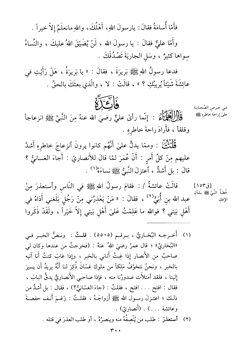 (1) أخرجه البخاريّ، برقم (5505) . قلت: ونصّ الخبر في «البخاريّ» ؛ قال عمر رضي الله عنه: (فخرجت من عندها وكان لي صاحب من الأنصار إذا غبت أتاني بالخبر، وإذا غاب كنت أنا آتيه بالخبر، ونحن نتخوّف ملكا من ملوك غسّان ذكر لنا أنّه يريد أن يسير إلينا، فلقد امتلأت صدورنا منه، فإذا صاحبي الأنصاريّ يدقّ الباب، فقال: افتح ... افتح، فقلت: (جاء الغسّانيّ؟) ، فقال: بل أشدّ من ذلك؛ اعتزل رسول الله صلى الله عليه وسلم أزواجه، فقلت: رغم أنف حفصة وعائشة ... ) . (أنصاريّ) .