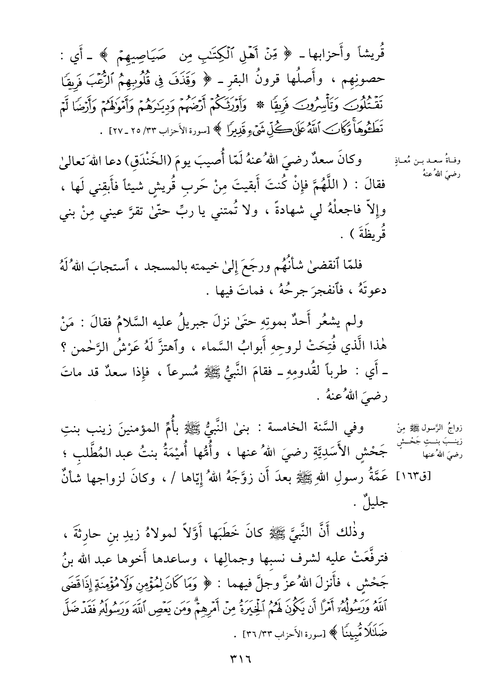 وفي السّنة الخامسة: بنى النّبيّ صلى الله عليه وسلم بأمّ المؤمنين زينب بنت جحش الأسديّة رضي الله عنها، وأمّها أميمة بنت عبد المطّلب؛ عمّة رسول الله صلى الله عليه وسلم بعد أن زوّجه الله إيّاها/، وكان لزواجها شأن جليل.