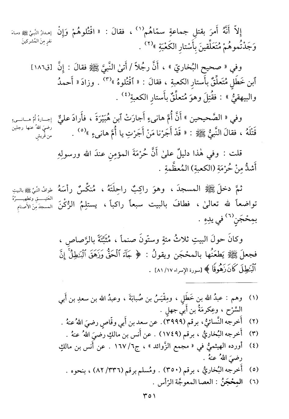 إلّا أنّه أمر بقتل جماعة سمّاهم «1» ، فقال: «اقتلوهم وإن وجدتموهم متعلّقين بأستار الكعبة» «2» .