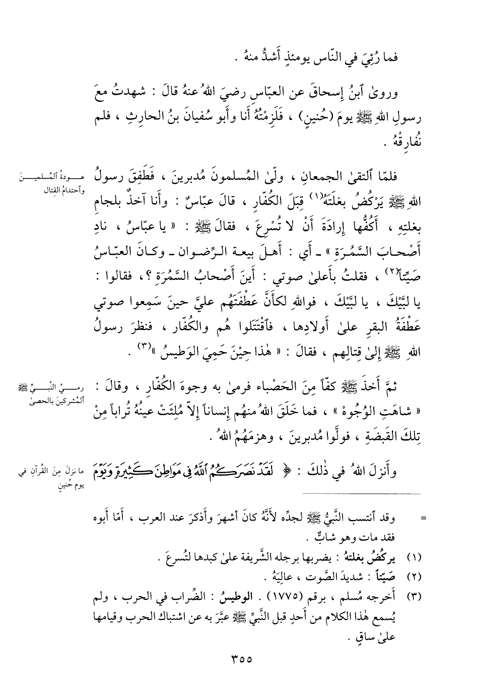 (3) أخرجه مسلم، برقم (1775) . الوطيس: الضّراب في الحرب، ولم يسمع هذا الكلام من أحد قبل النّبيّ صلى الله عليه وسلم عبّر به عن اشتباك الحرب وقيامها على ساق.