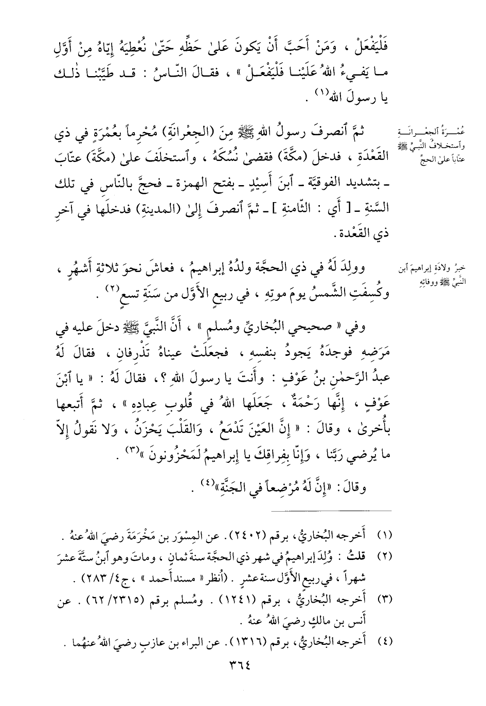 (2) قلت: ولد إبراهيم في شهر ذي الحجّة سنة ثمان، ومات وهو ابن ستّة عشر شهرا، في ربيع الأوّل سنة عشر. (انظر «مسند أحمد» ، ج 4/ 283) .