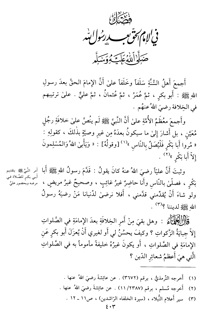 فصل في الإمام الحقّ بعد رسول الله صلّى الله عليه وسلّم