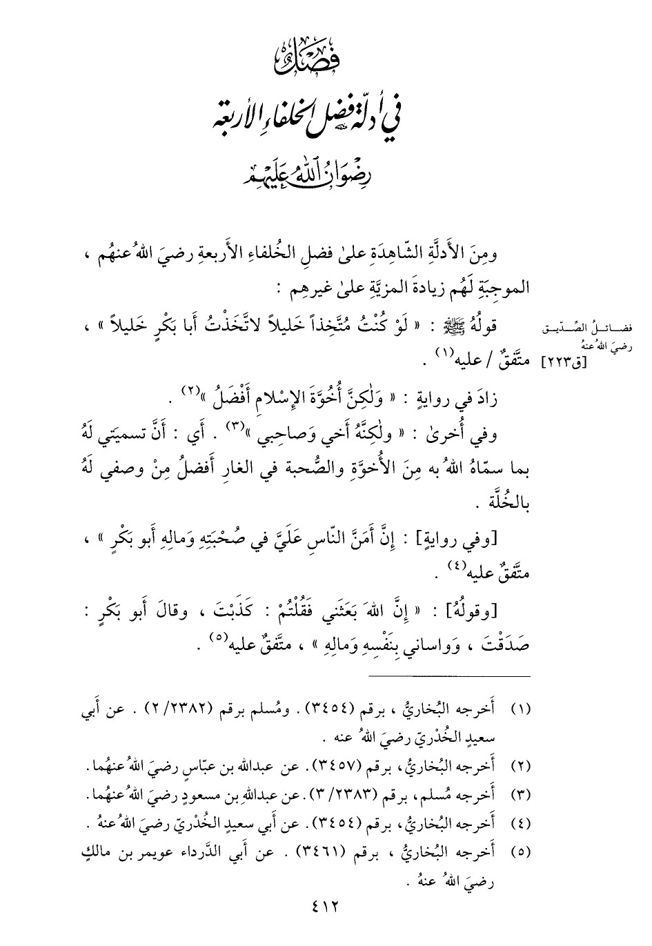 فصل في أدلّة فضل الخلفاء الأربعة رضوان الله عليهم