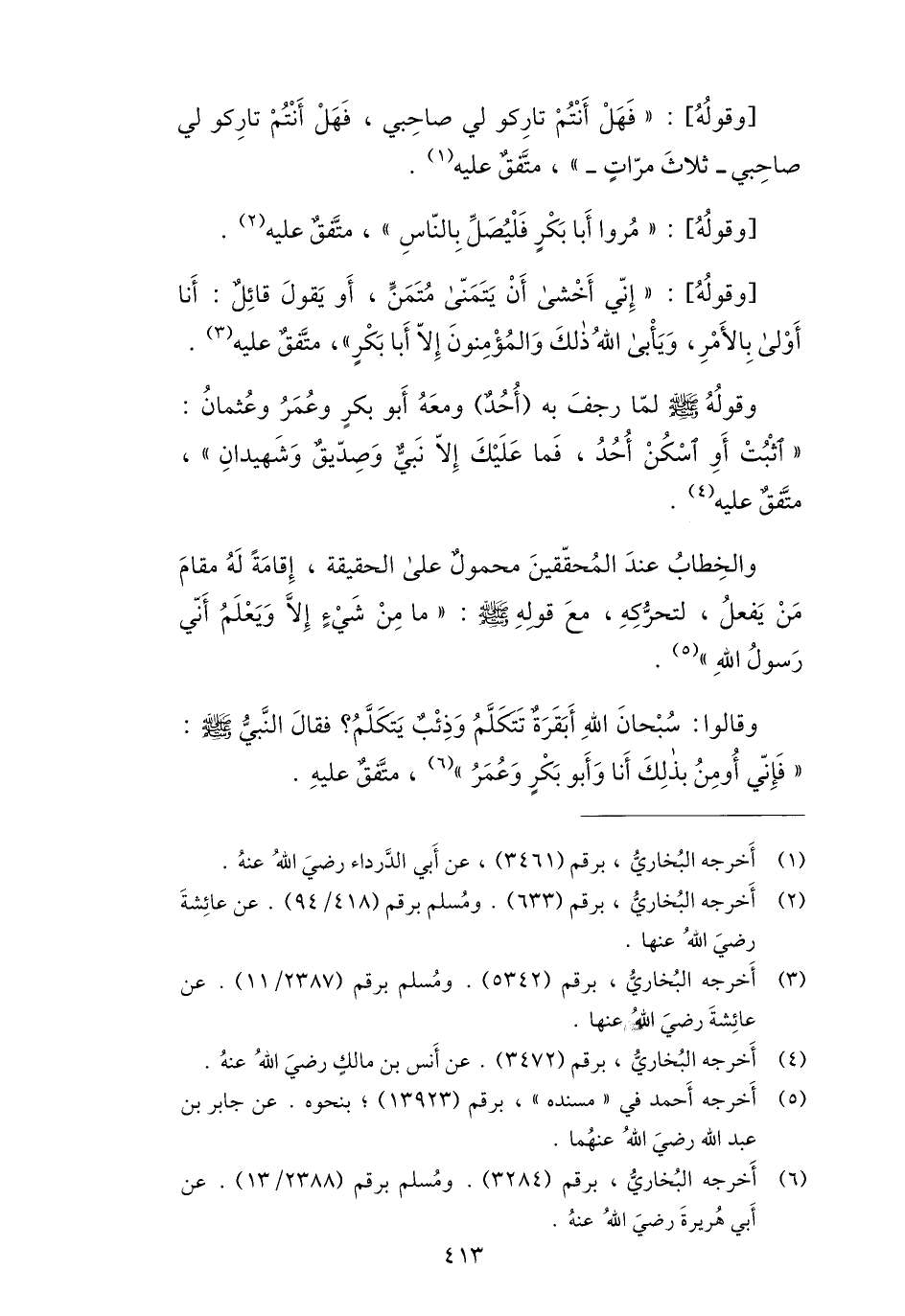 «فإنّي أومن بذلك أنا وأبو بكر وعمر» «6» ، متّفق عليه.