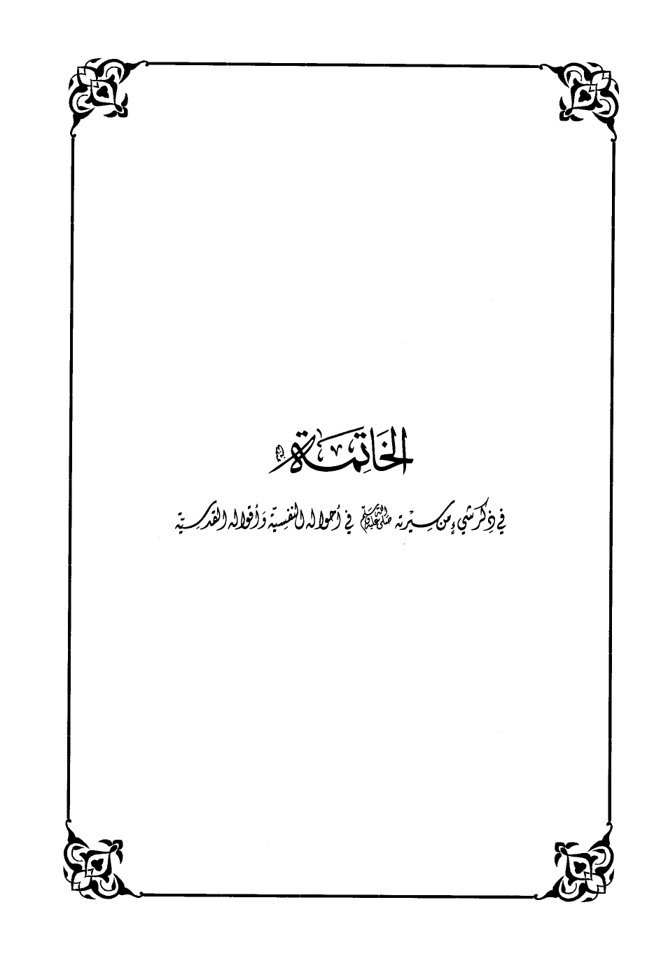 في ذكر شيء من سيرته صلى الله عليه وسلّم في أحواله النفسيّة وأقواله القدسيّة