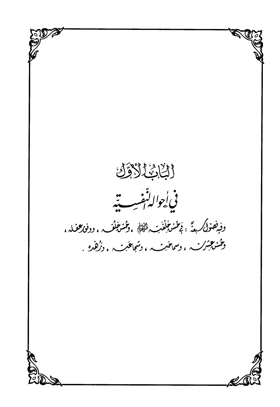 الباب الأوّل في أحواله النّفسيّة وفيه فصول سبعة: