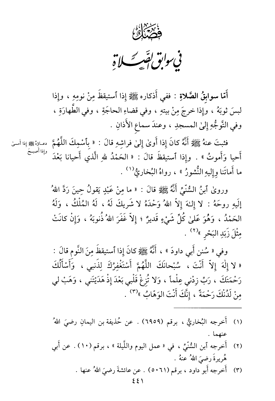 وفي «سنن أبي داود» ، أنّه صلى الله عليه وسلم كان إذا استيقظ من النّوم قال: