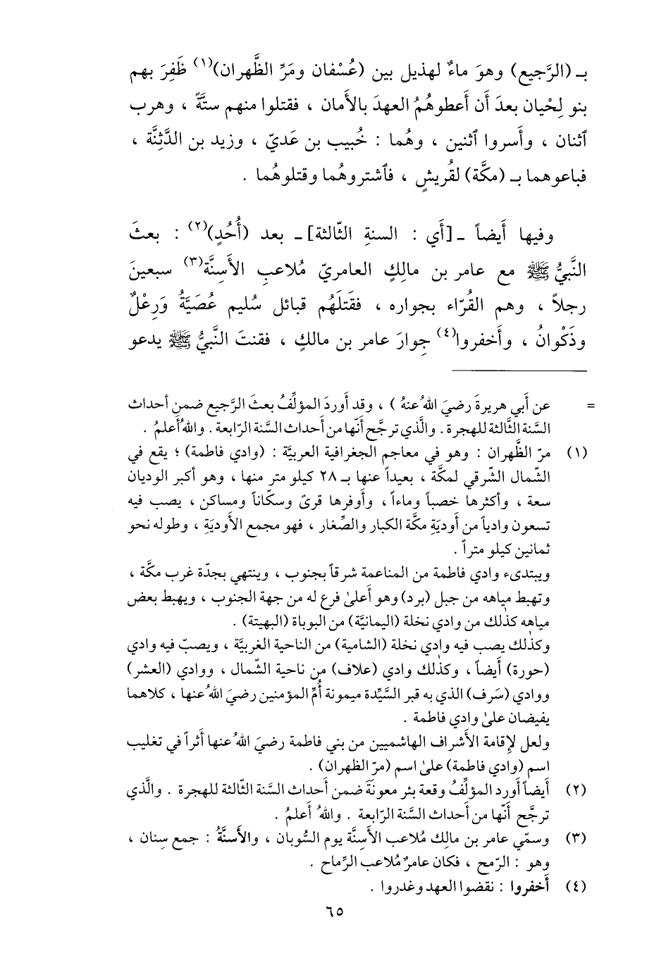 (2) أيضا أورد المؤلّف وقعة بئر معونة ضمن أحداث السّنة الثّالثة للهجرة. والّذي ترجّح أنّها من أحداث السّنة الرّابعة. والله أعلم.