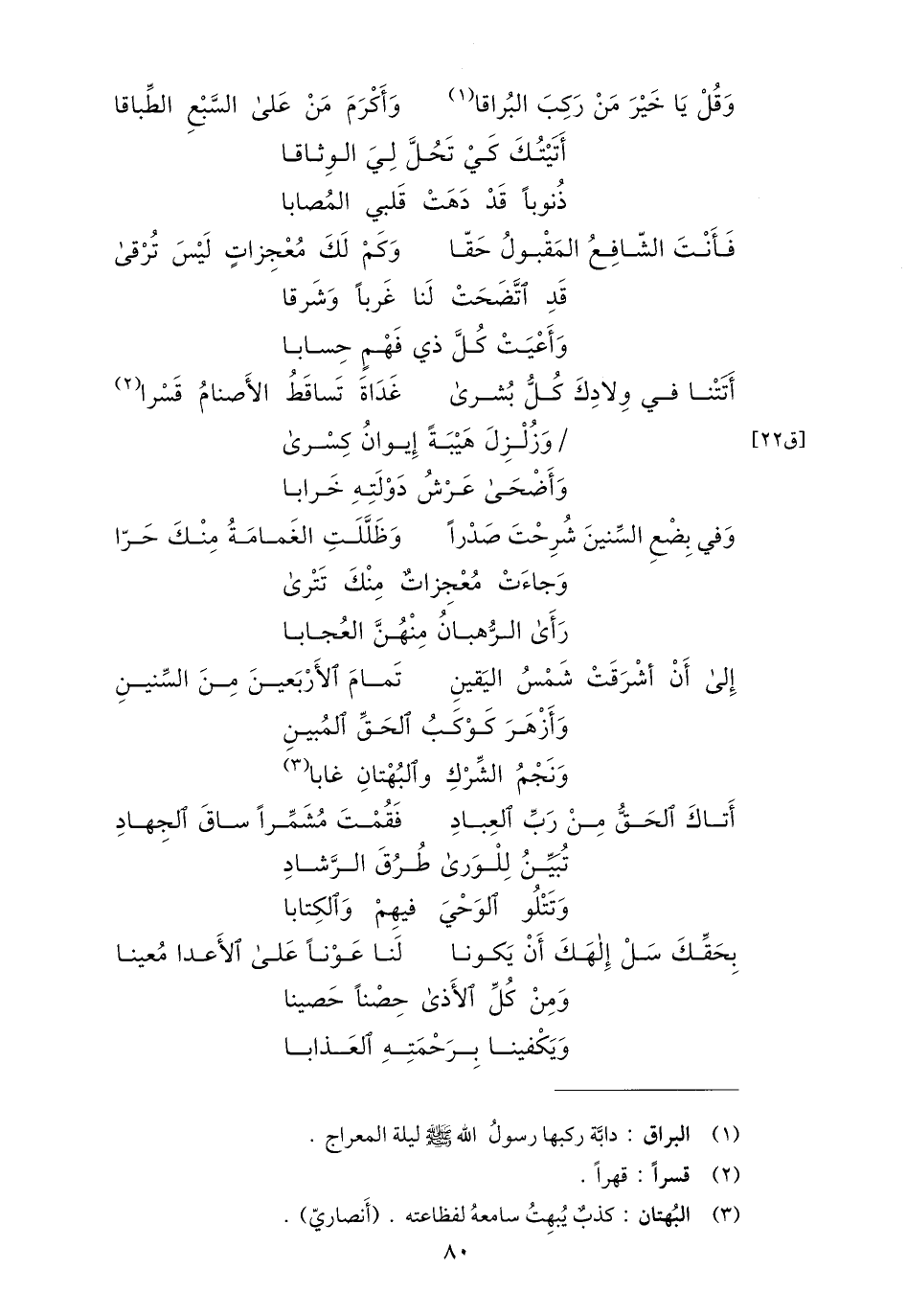 وقل يا خير من ركب البراقا «1» ... وأكرم من علا السّبع الطّباقا