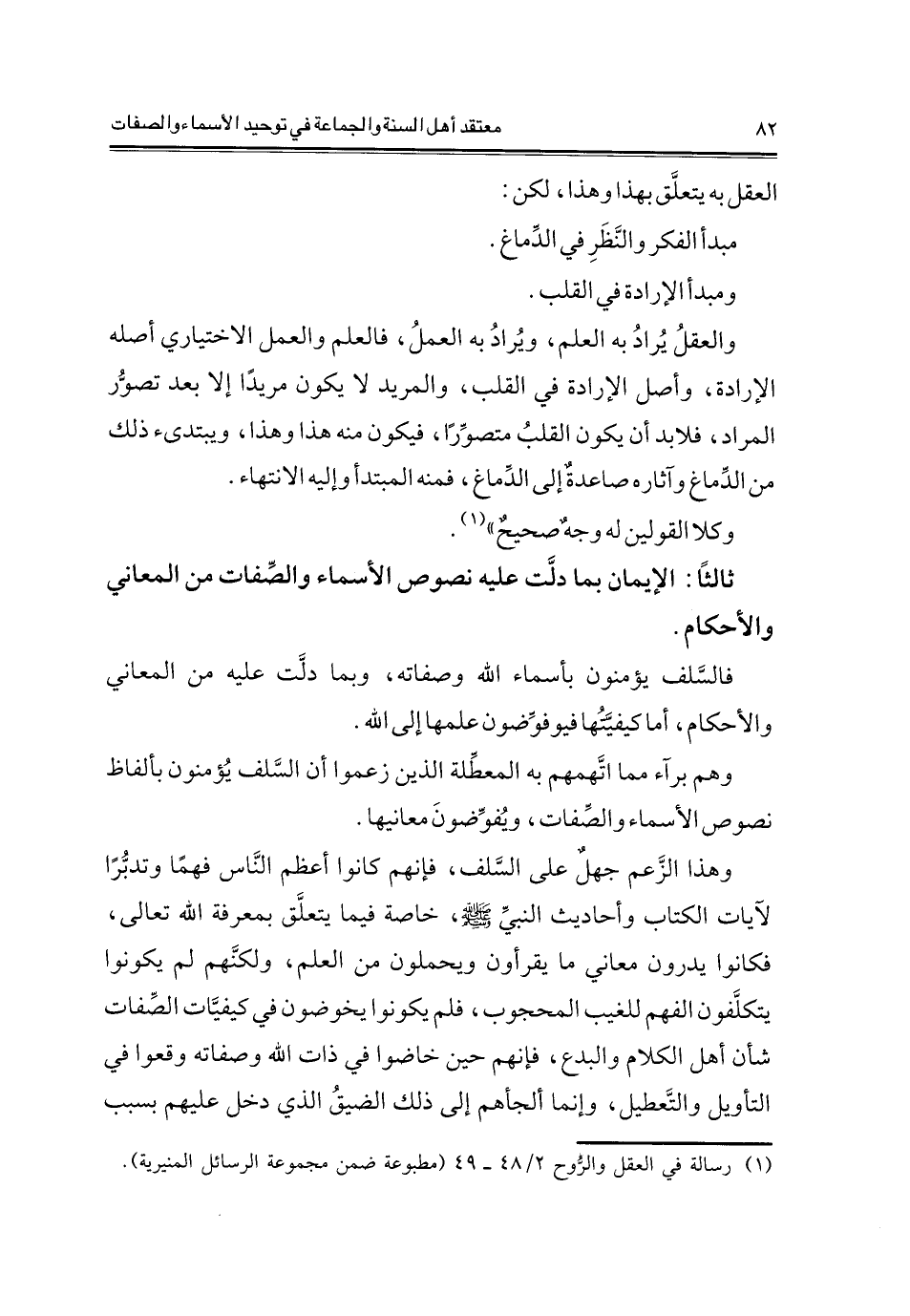1 رسائل في العقل والروح 2/48- 49 (مطبوعة ضمن مجموعة الرسائل المنيرية)