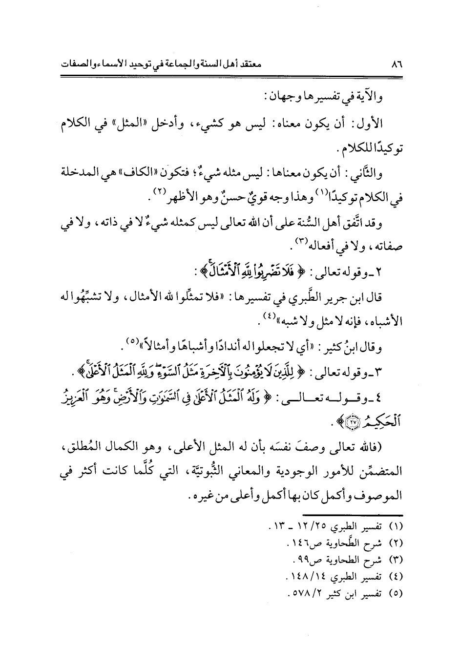قال ابن جرير الطبري في تفسيرها: "فلا تمثلوا لله الأمثال، ولا تشبهوا له الأشباه، فإنه لا مثل ولا شبه"4.