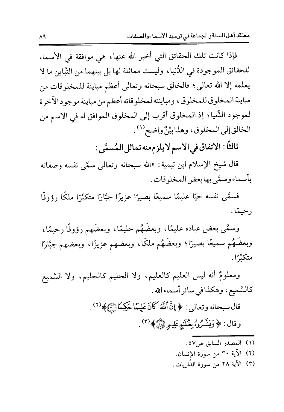 ثالثًا: الاتفاق في الاسم لا يلزم منه تماثل المسمى.