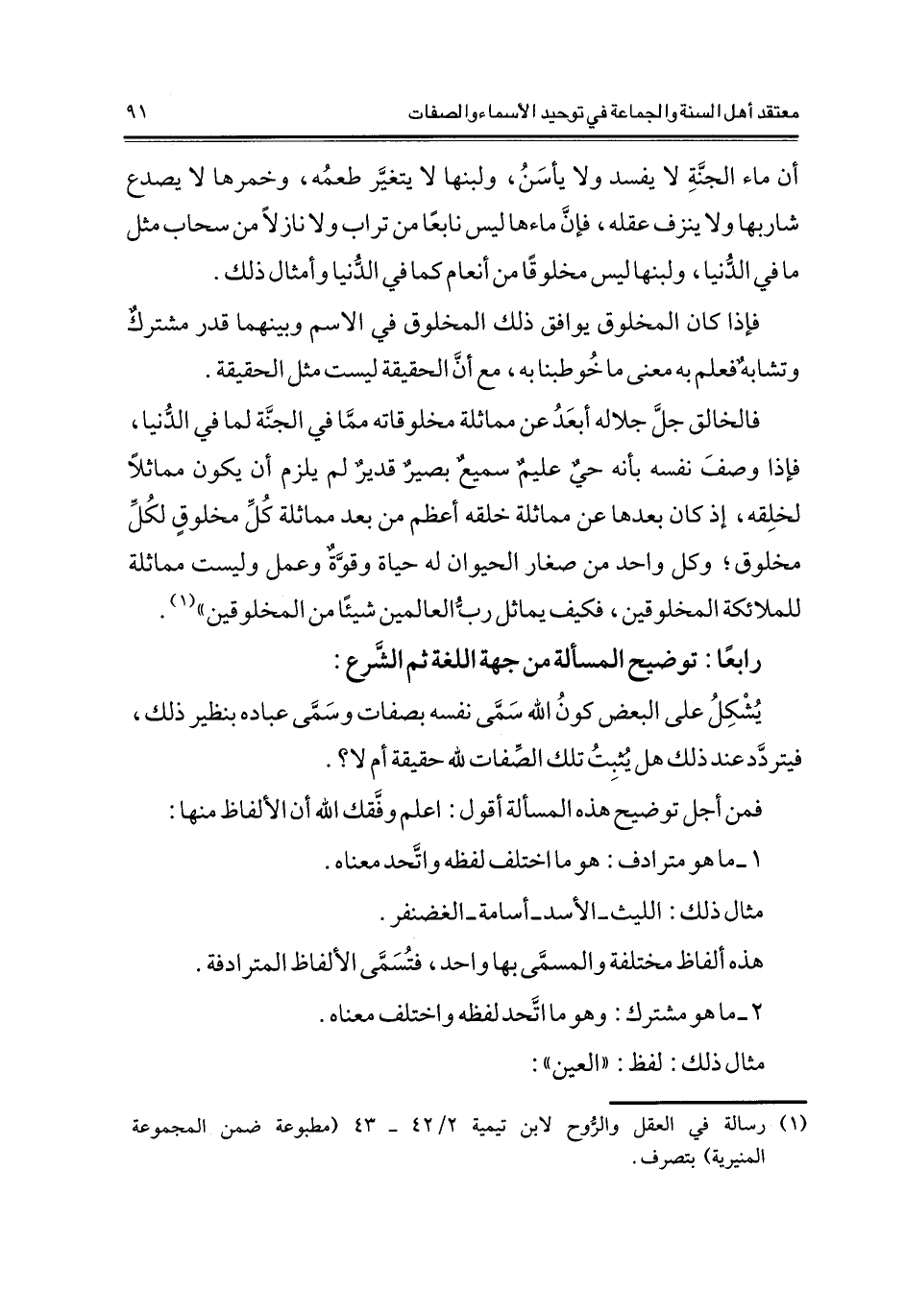 1 رسالة في العقل والروح لابن تيمية 2/42- 43 (مطبوعة ضمن المجموعة المنيرية) بتصرف