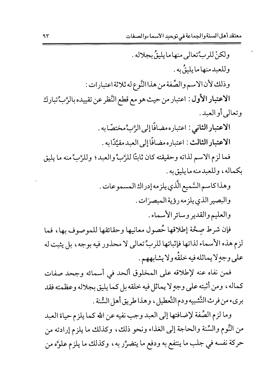 كتاب معتقد أهل السنة والجماعة في توحيد الأسماء والصفات