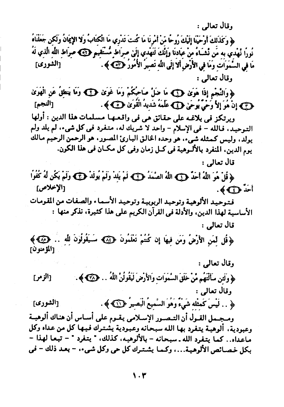 فتوحيد الألوهية وتوحيد الربوبية وتوحيد الأسماء والصفات من المقومات الأساسية لهذا الدين، والأدلة في القرآن الكريم على هذا كثيرة، نذكر منها.
