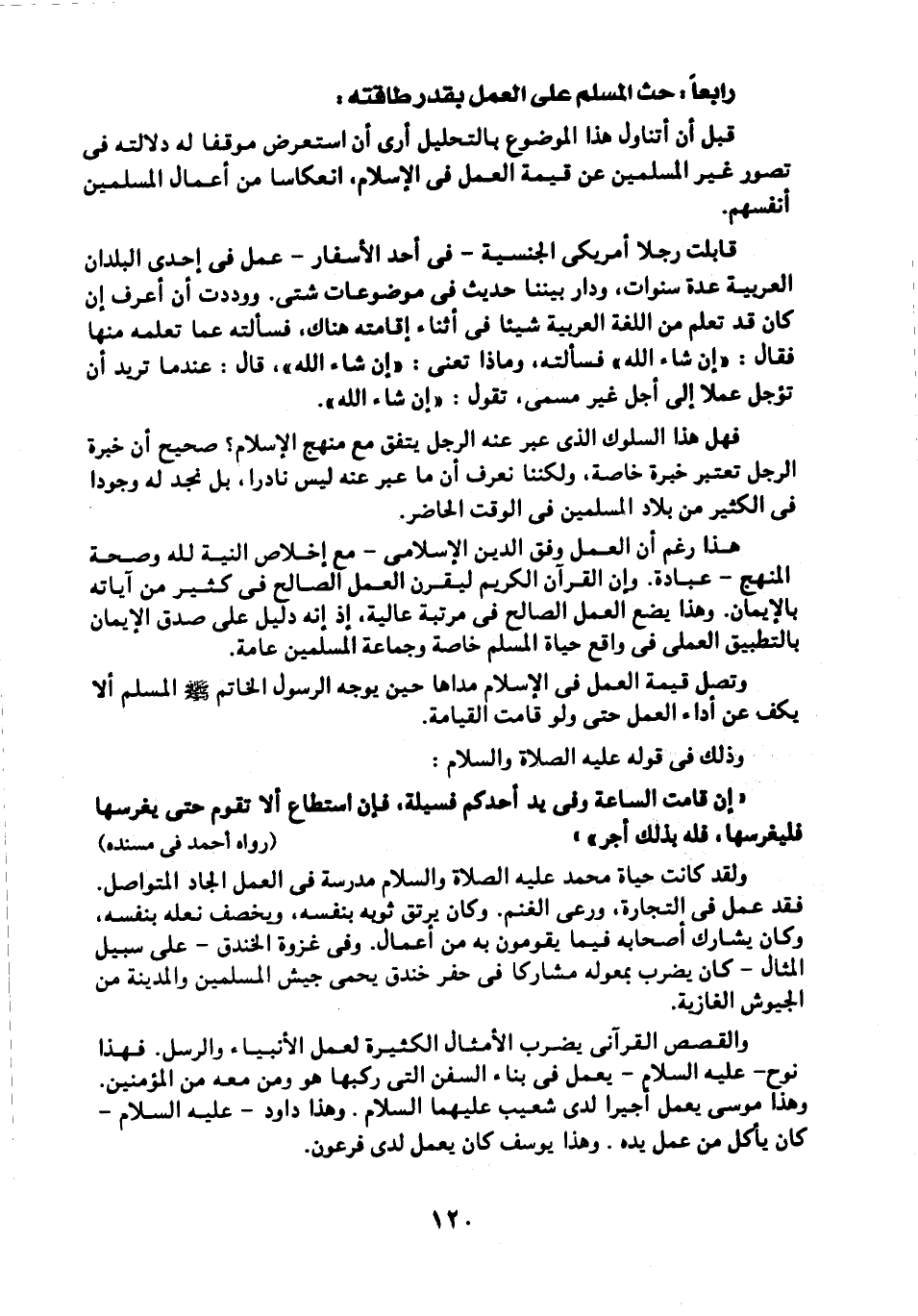 رابعًا: حث المسلم على العمل بقدر طاقته