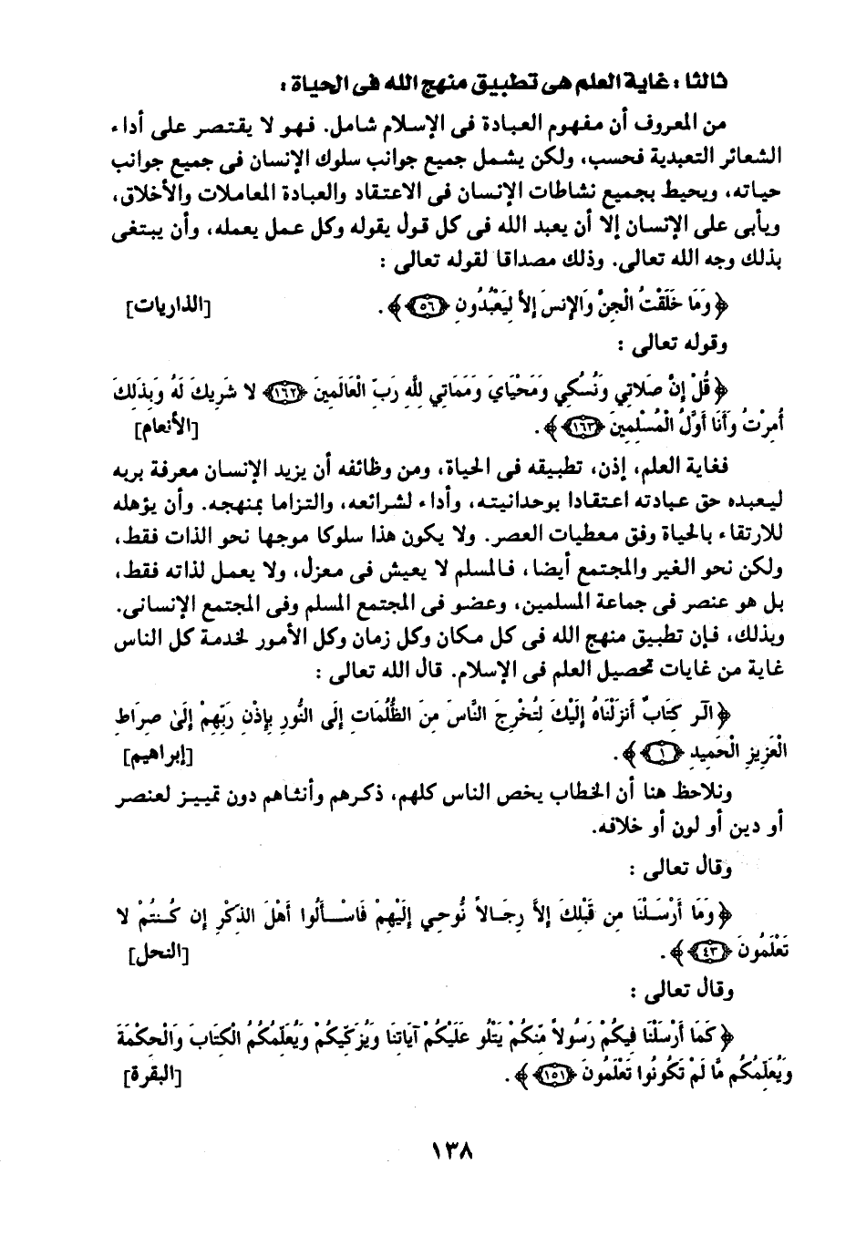 ثالثا: غاية العلم هي تطبيق منهج الله في الحياة