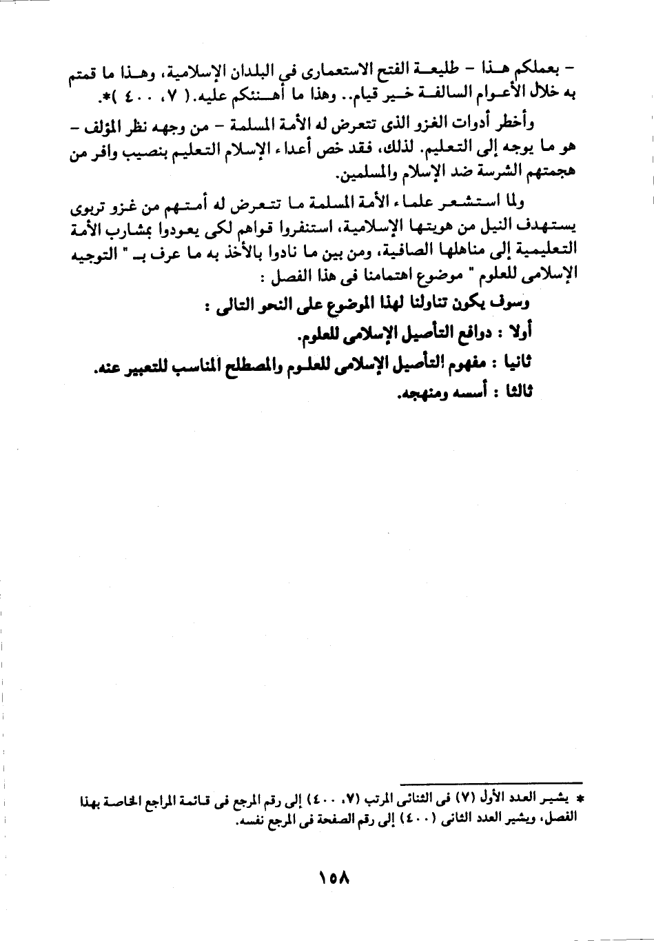 ولما استشعر علماء الأمة الإسلامية ما تتعرض له أمتهم من غزو تربوي يستهدف النيل من هويتها الإسلامية، استنفروا قواهم لكي يعودوا بمشارب الأمة التعليمية إلى مناهلها الصافية، ومن بين ما نادوا بالأخذ به ما عرف بـ"التوجيه الإسلامي للعلوم" موضوع اهتمامنا في هذا الفصل: