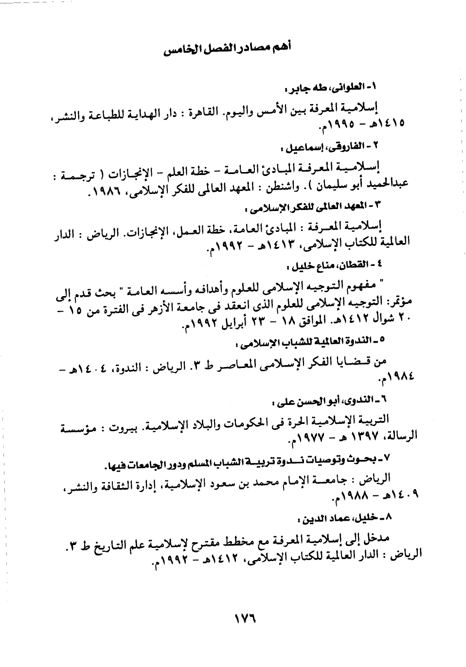 إسلامية المعرفة: المبادئ العامة، خطة العمل، الإنجازات، الرياض: الدار العالمية للكتاب الإسلامي، 1413هـ-1992م.