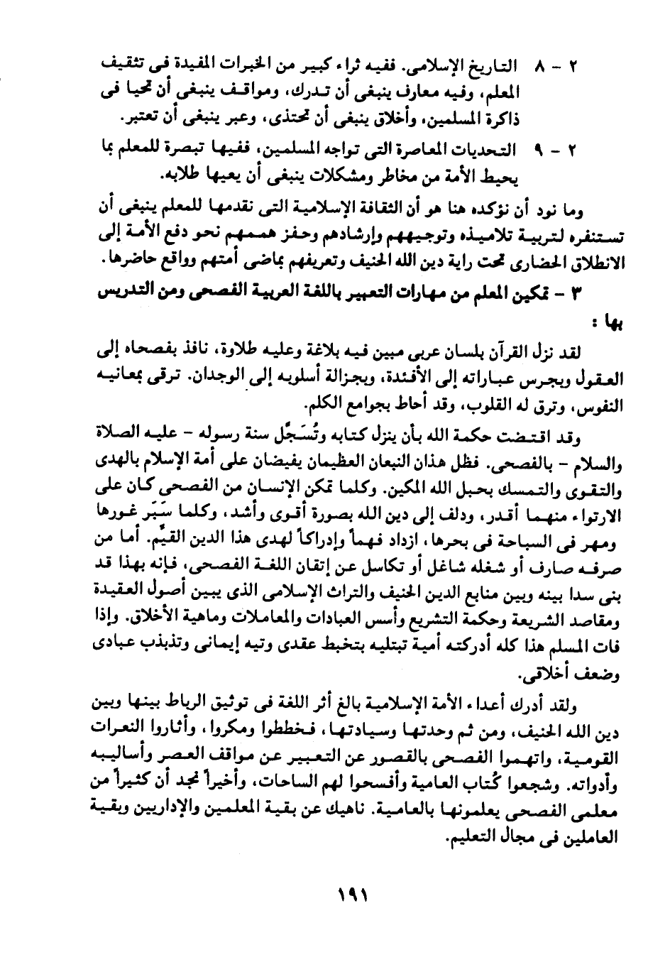 3- تمكين المعلم من مهارات التعبير باللغة العربية الفصحى, ومن التدريس بها: