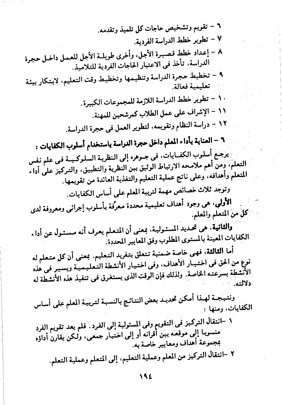 6- العناية بأداء المعلم داخل حجرة الدراسة باستخدام أسلوب الكفايات: