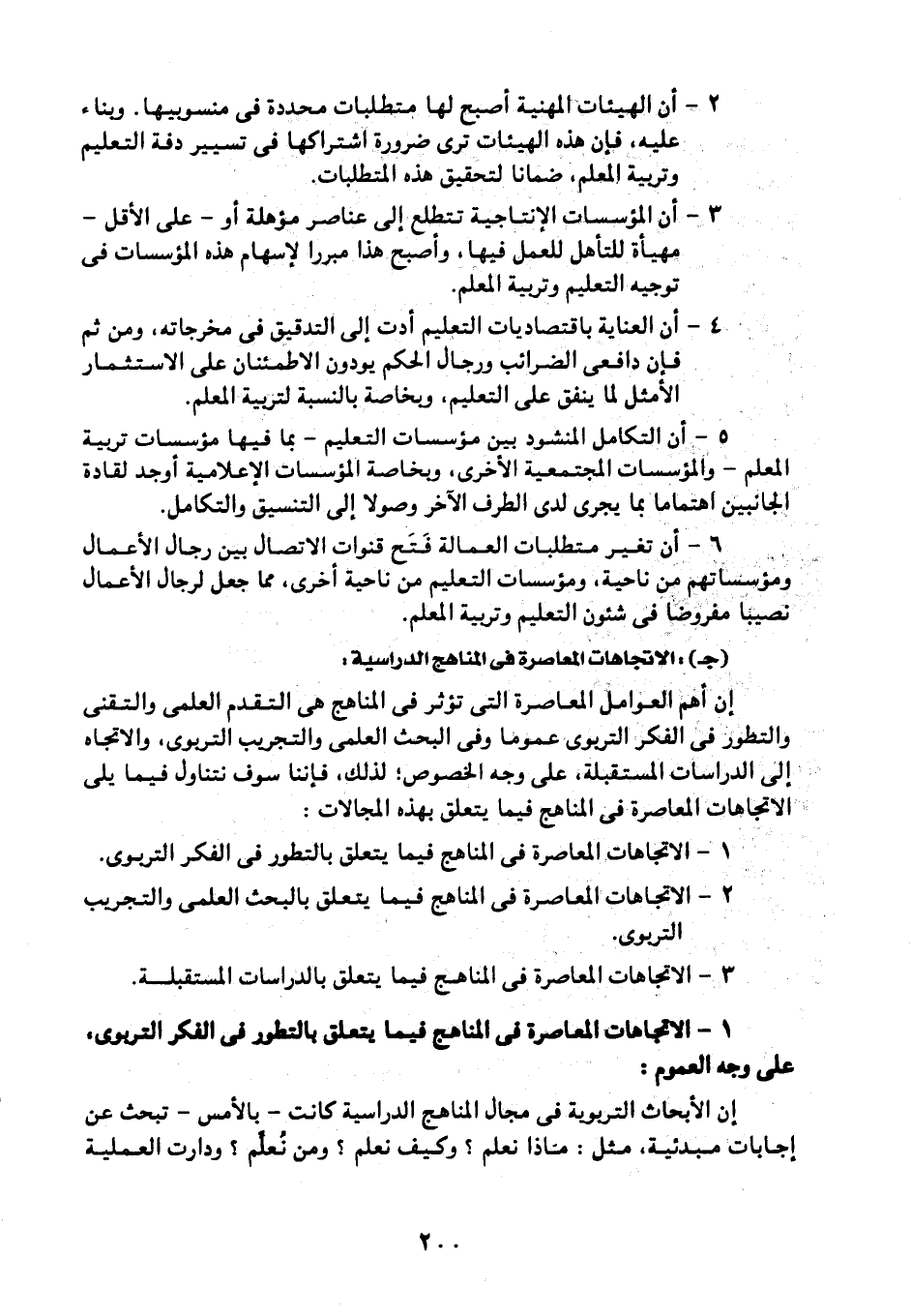 1- الاتجاهات المعاصرة في المناهج فيما يتعلق بالتطور في الفكر التربوي.