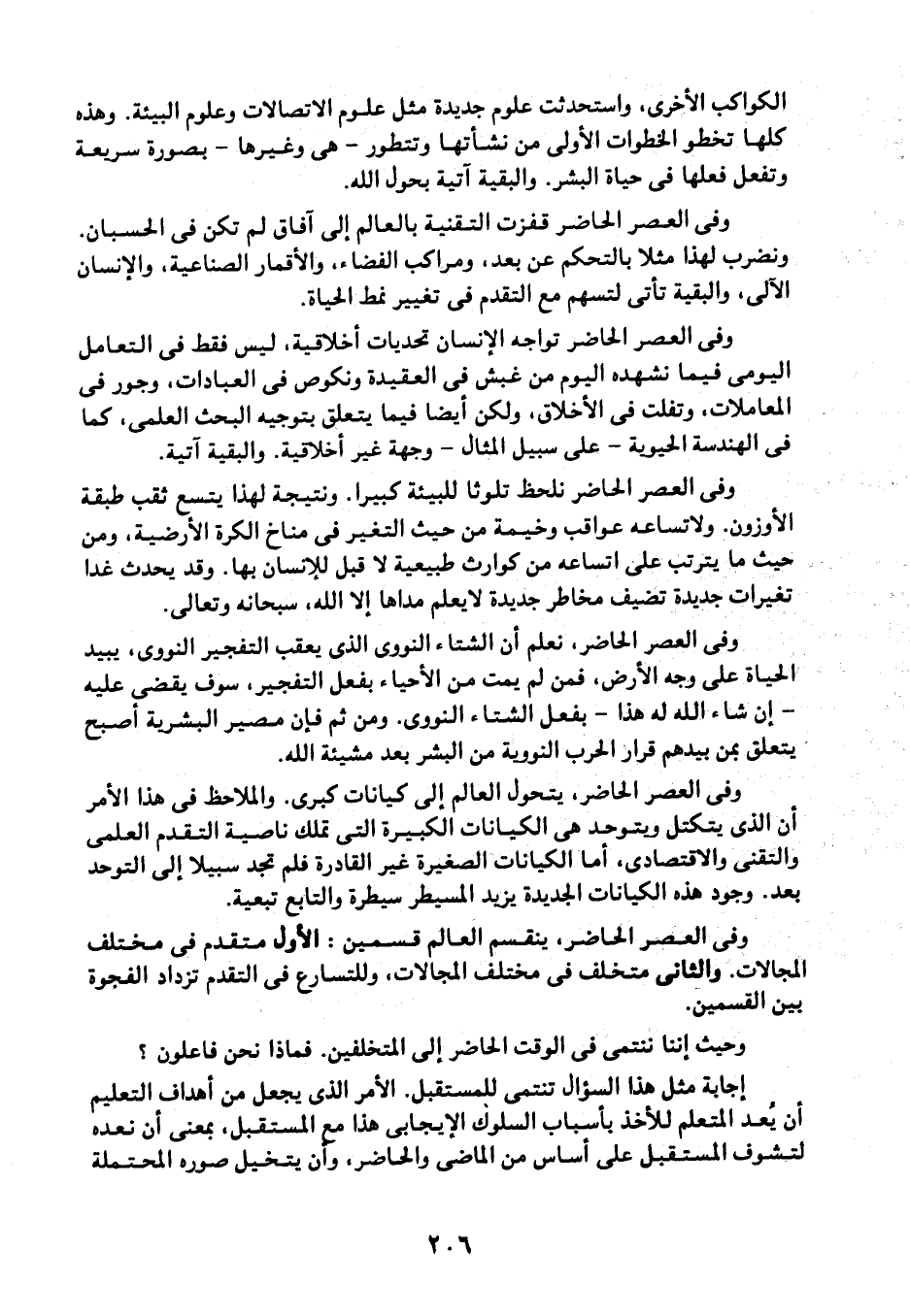 الكواكب الأخرى، واستحدثت علوم جديدة مثل علوم الاتصالات وعلوم البيئة، وهذه كلها تخطو الخطوات الأولى من نشأتها وتتطور -هي وغيرها- بصورة سريعة وتفعل فعلها في حياة البشر. والبقية آتية بحول الله.