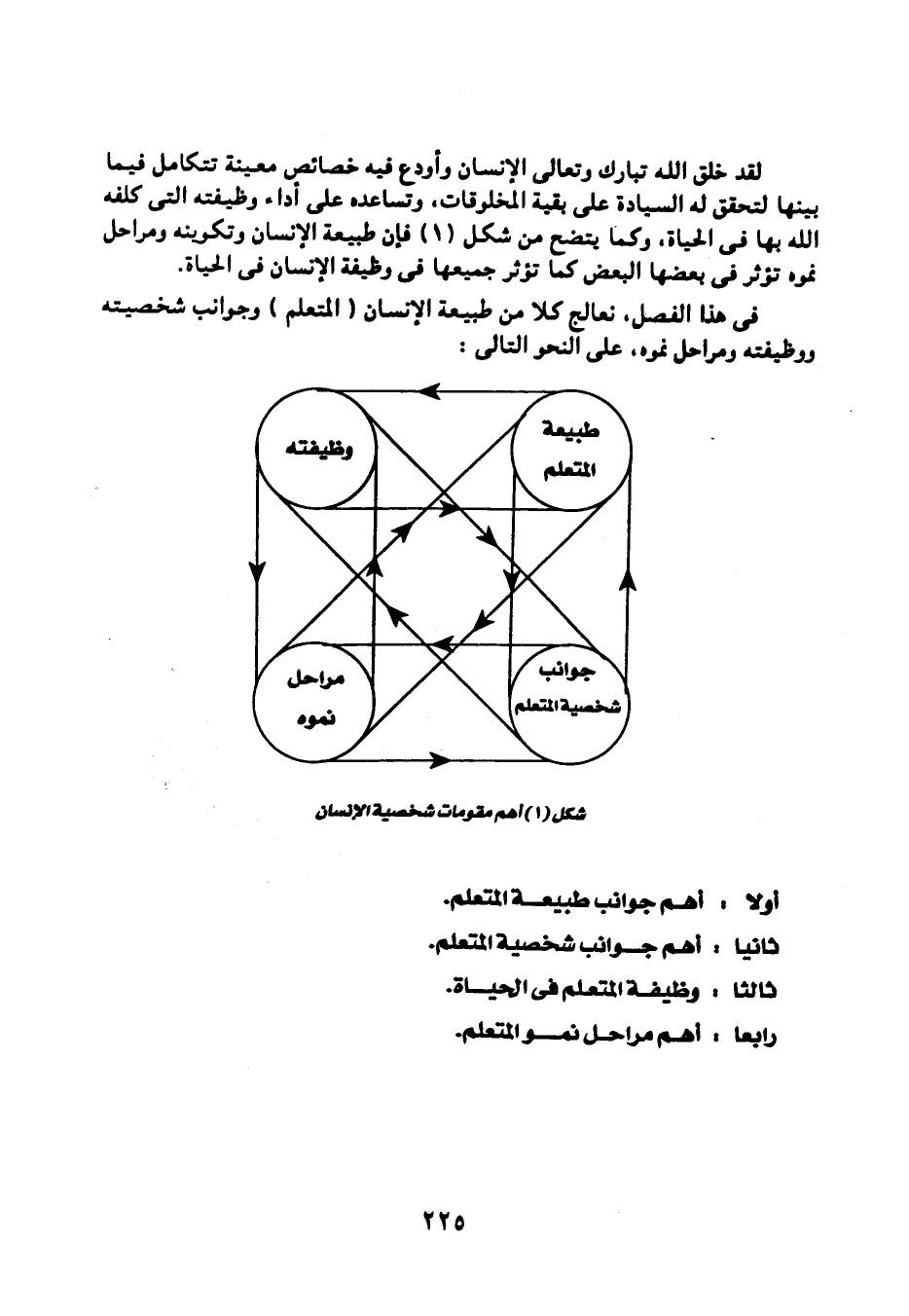 وفي هذا الفصل، نعالج كلا من طبيعة الإنسان "المتعلم" وجوانب شخصيته ووظيفته ومراحل نموه، على النحو التالي: