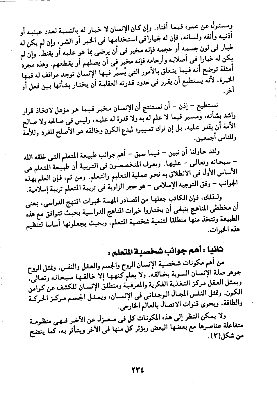 ولقد حاولنا أن نبين -فيما سبق- أهم جوانب طبيعة المتعلم التي خلقه الله -سبحانه وتعالى- عليها. ويعرف المتخصصون في التربية أن طبيعة المتعلم هي الأساس الأول في الانطلاق به نحو عملية التعليم والتعلم. ومن ثم فإن العلم بهذه الجوانب -وفق التوجيه الإسلامي- هو حجر الزاوية في تربية المتعلم تربية إسلامية.