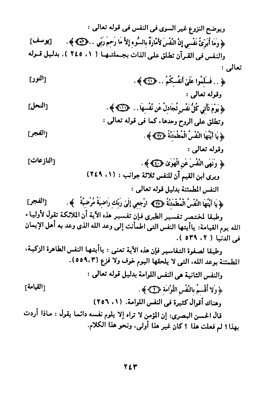وهناك أقوال كثيرة في النفس اللوامة. "1، 256".