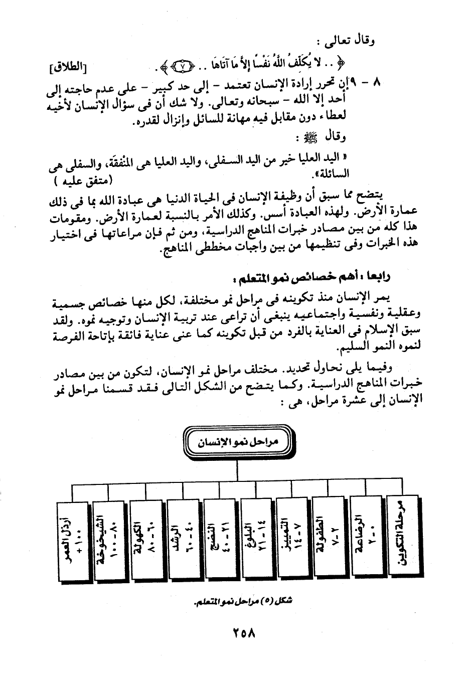 وفيما يلي نحاول تحديد. مختلف مراحل نمو الإنسان، لتكون من بين مصادر خبرات المناهج الدراسية. وكما يتضح من الشكل التالي فقد قسمنا مراحل نمو الإنسان إلى عشرة مراحل، هي: