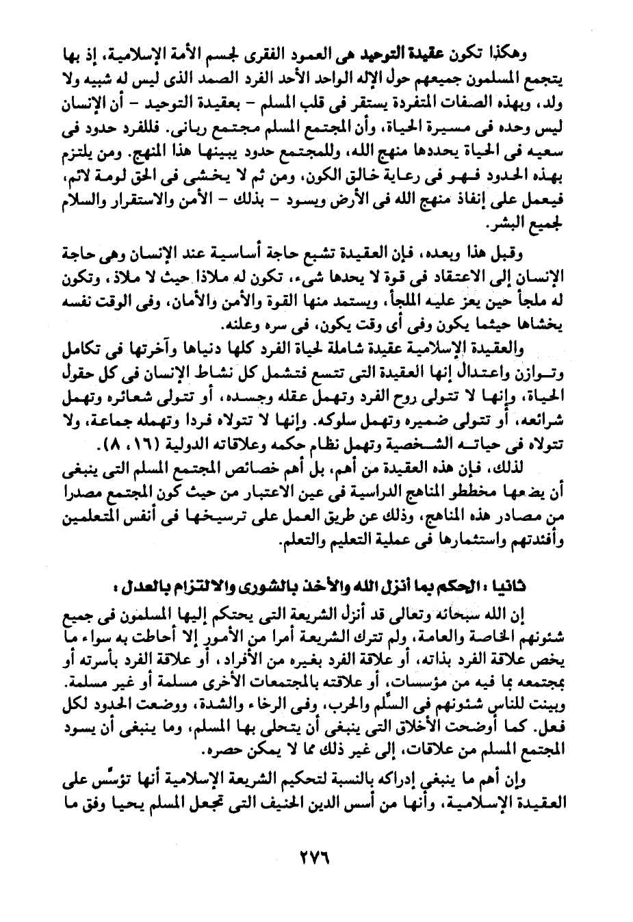 ثانيًا: الحكم بما أنزل الله والأخذ بالشورى والالتزام بالعدل