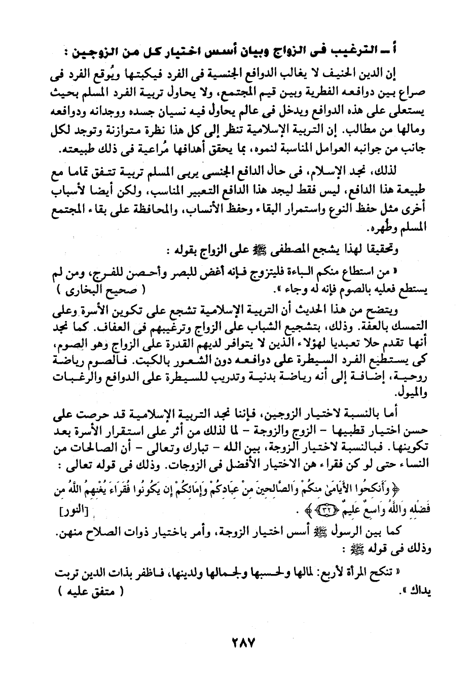 أ- الترغيب في الزواج وبيان أسس اختيار كل من الزوجين: