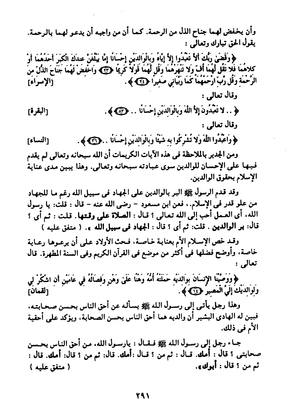 وقال تعالى: {وَاعْبُدُوا اللَّهَ وَلا تُشْرِكُوا بِهِ شَيْئًا وَبِالْوَالِدَيْنِ إِحْسَانًا} [النساء: 36] .