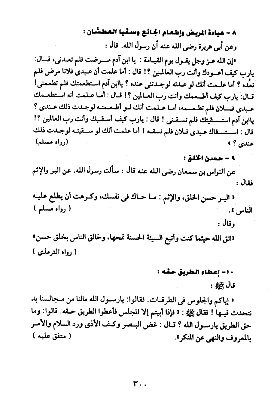 عن النواس بن سمعان -رضي الله عنه- قال: سألت رسول الله. عن البر والإثم فقال: "البر حسن الخلق، والإثم: ما حاك في نفسك، وكرهت أن يطلع عليه الناس". "رواه مسلم".