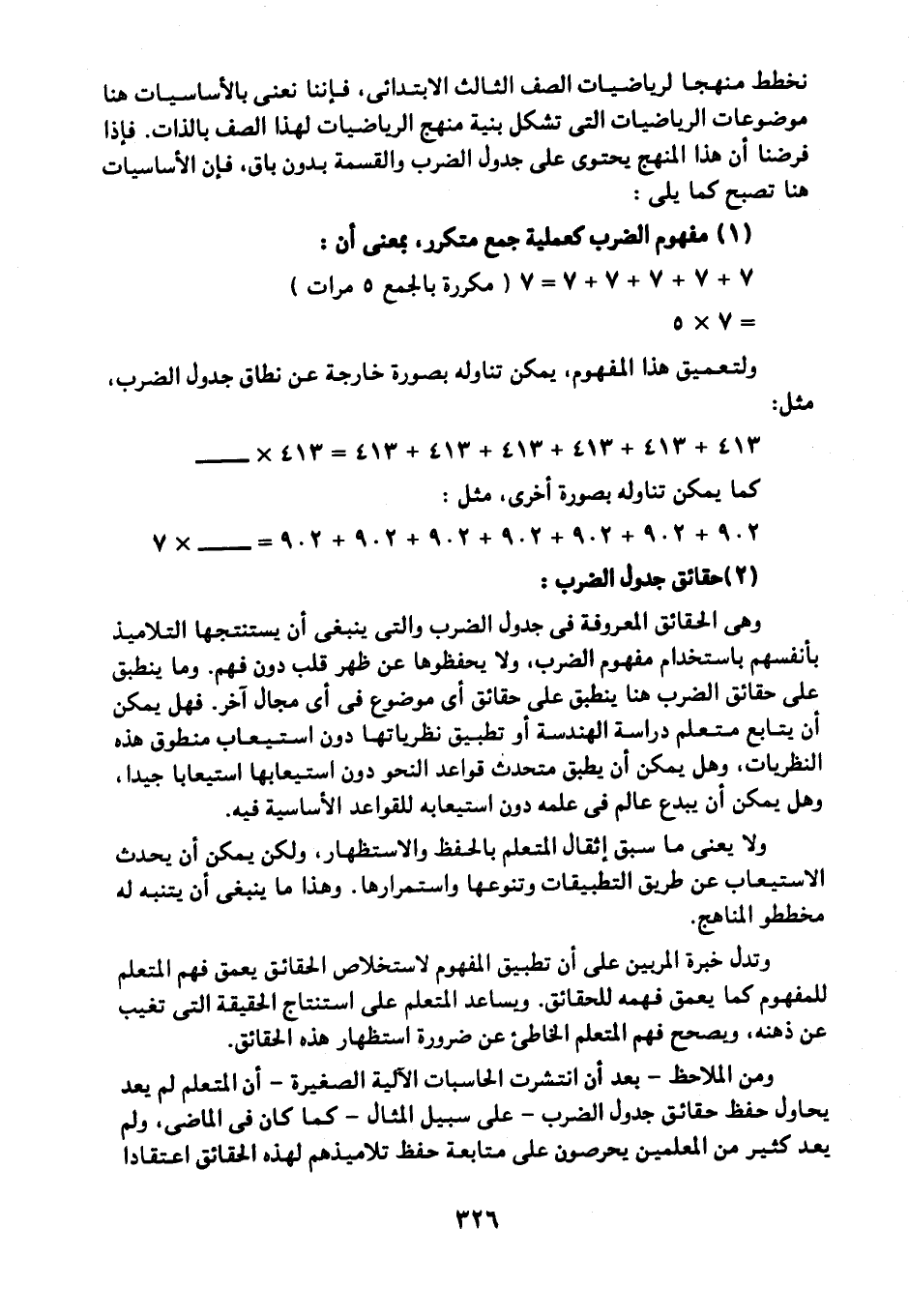 1- مفهوم الضرب كعملية جمع متكرر، بمعنى أن: