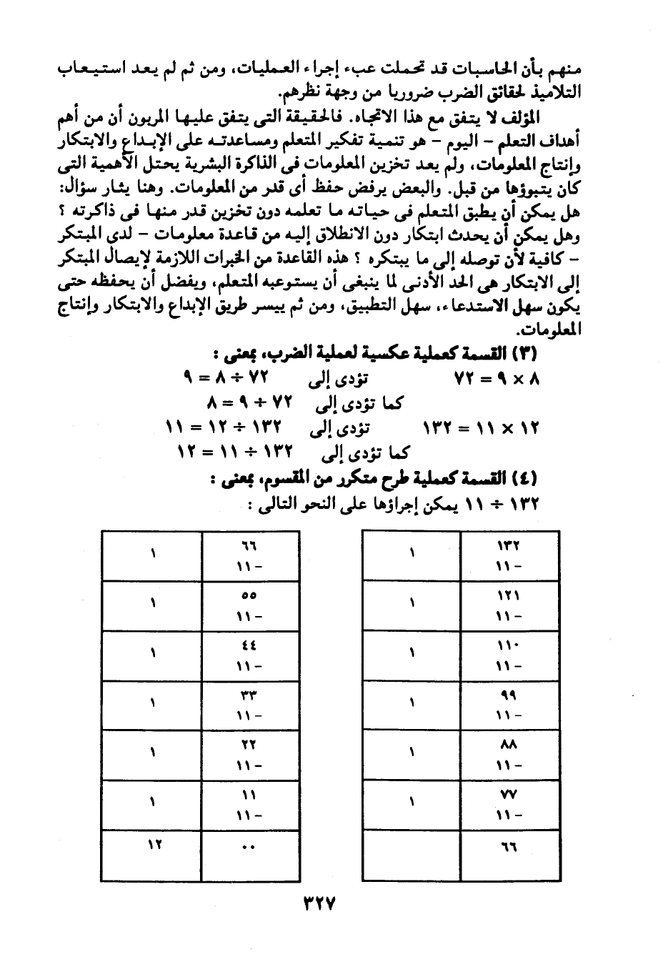 منهم بأن الحاسبات قد تحملت عبء إجراء العمليات، ومن ثم لم يعد استيعاب التلاميذ لحقائق الضرب ضروريا من وجهة نظرهم.
