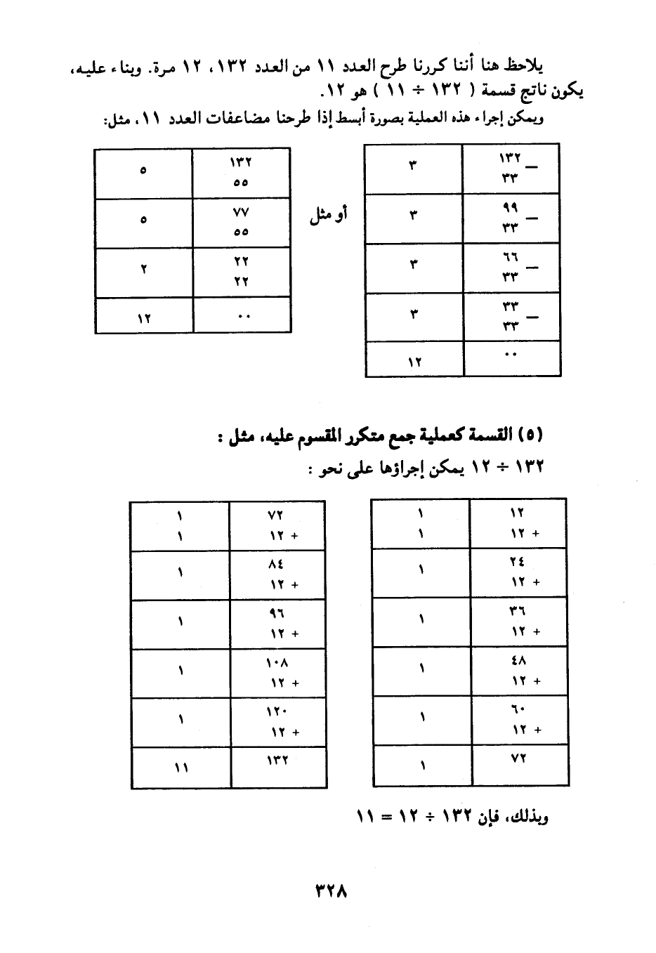وبذلك، فإن 132 ÷ 12= 11