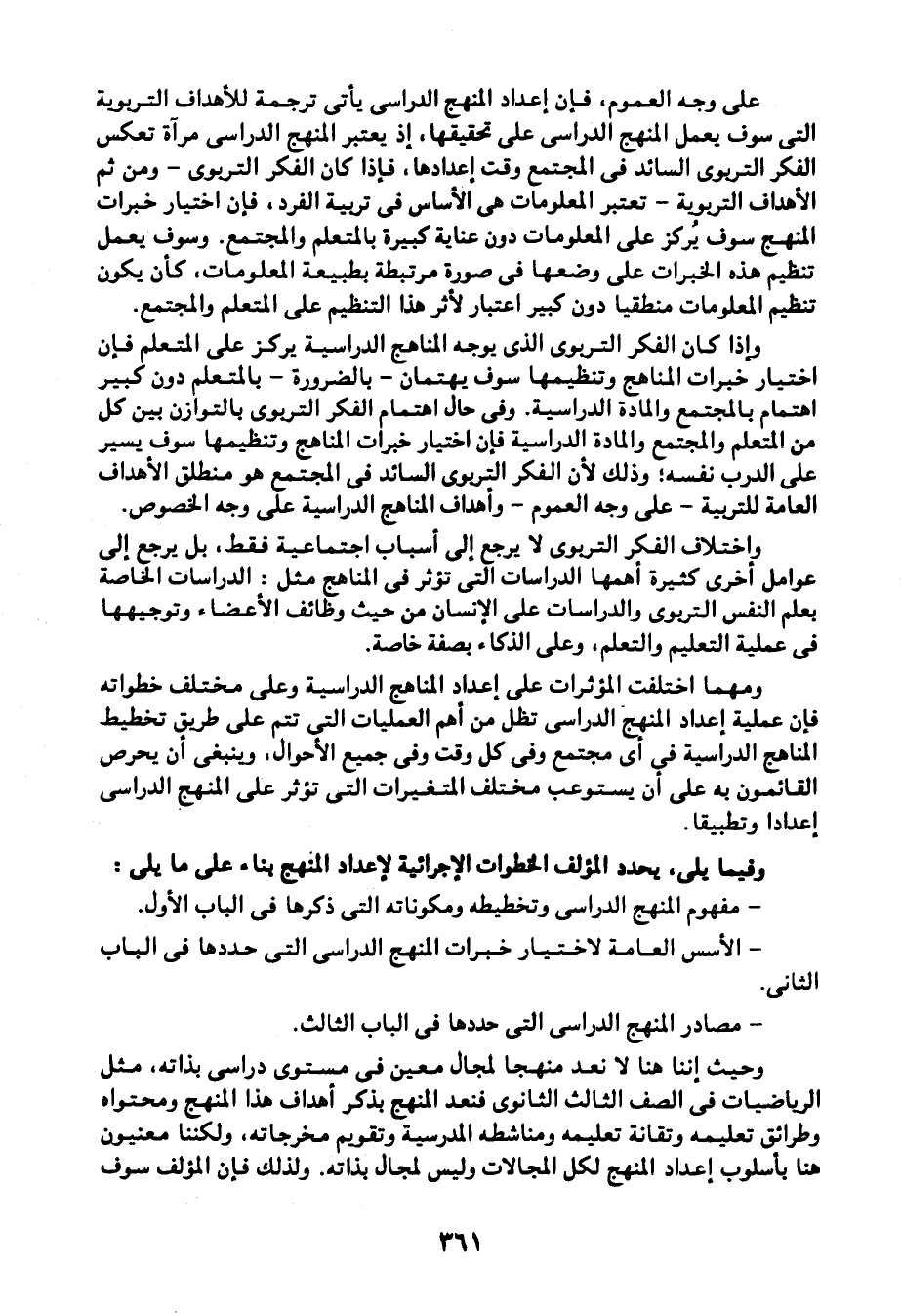 - مفهوم المنهج الدراسي وتخطيطه ومكوناته التي ذكرها في الباب الأول.