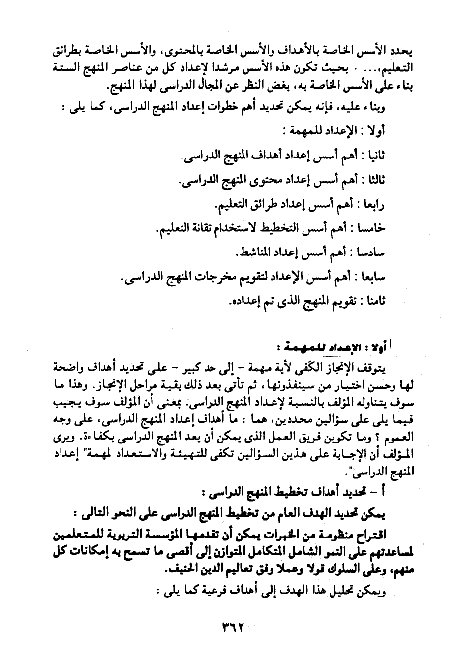 يتوقف الإنجاز الكفي لأية مهمة -إلى حد كبير- على تحديد أهداف واضحة لها وحسن اختيار من سينفذونها، ثم تأتي بعد ذلك بقية مراحل الإنجاز، وهذا ما سوف يتناوله المؤلف بالنسبة لإعداد المنهج الدراسي. بمعنى أن المؤلف سوف يجيب فيما يلي على سؤالين محددين، هما: ما أهداف المنهج الدراسي، على وجه العموم؟ وما تكوين فريق العمل الذي يمكن أن يعد المنهج الدراسي بكفاءة. ويرى المؤلف أن الإجابة على هذين السؤالين تكفي للتهيئة والاستعداد لمهمة "إعداد المنهج الدراسي".