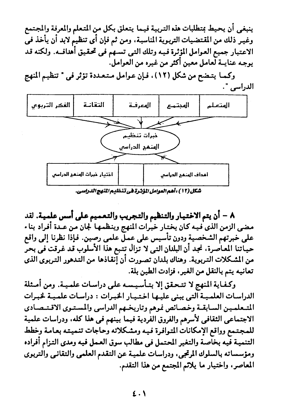 وكما يتضح من شكل "12" فإن عوامل متعددة تؤثر في "تنظيم المنهج الدراسي".