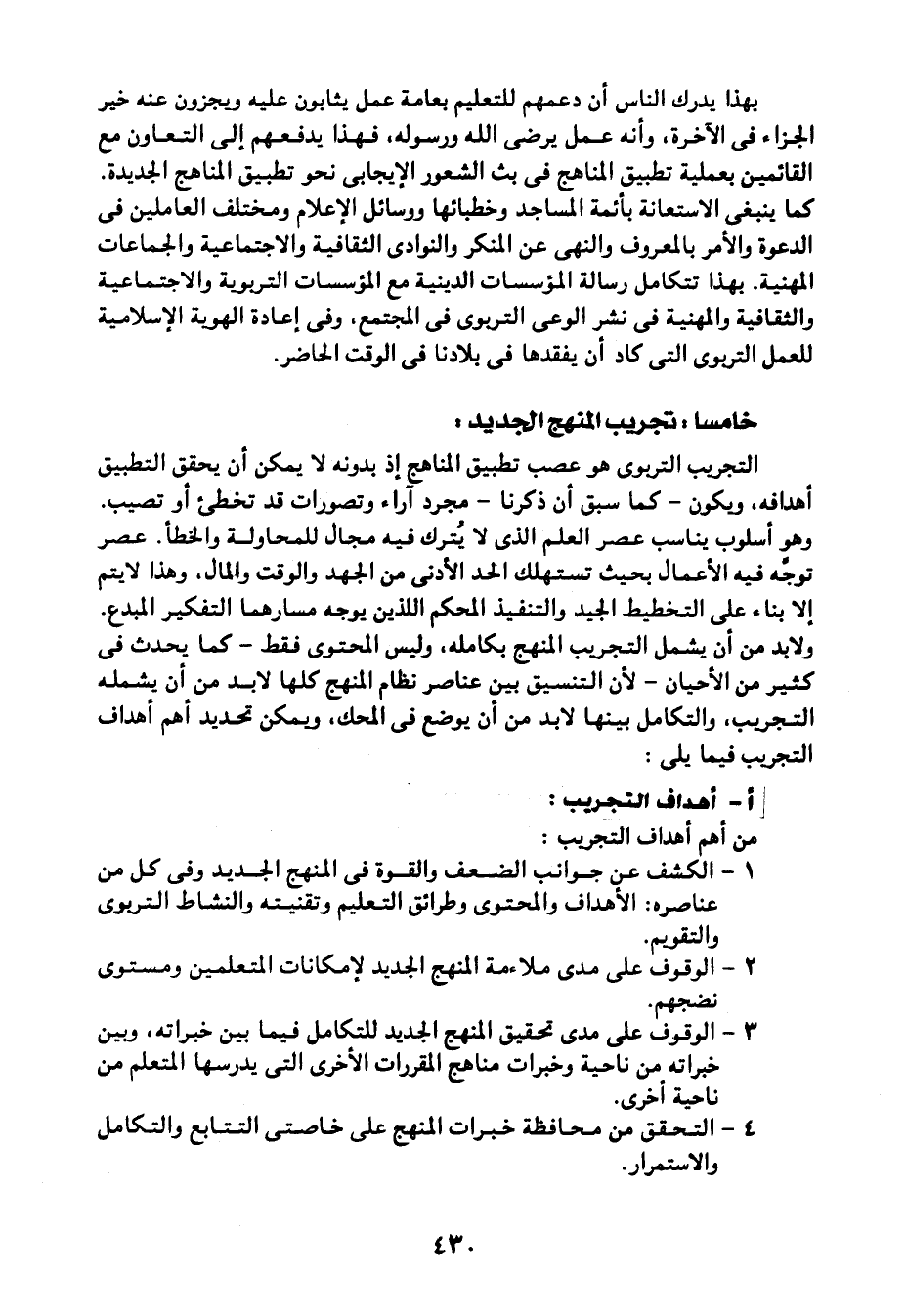 1- الكشف عن جوانب الضعف والقوة في المنهج الجديد وفي كل من عناصره: الأهداف والمحتوى وطرائق التعليم وتقنيته والنشاط التربوي والتقويم.