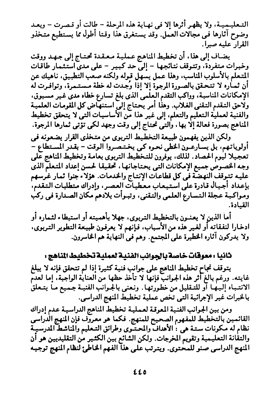 ثانيًا: معوقات خاصة بالجوانب الفنية لعملية تخطيط المناهج