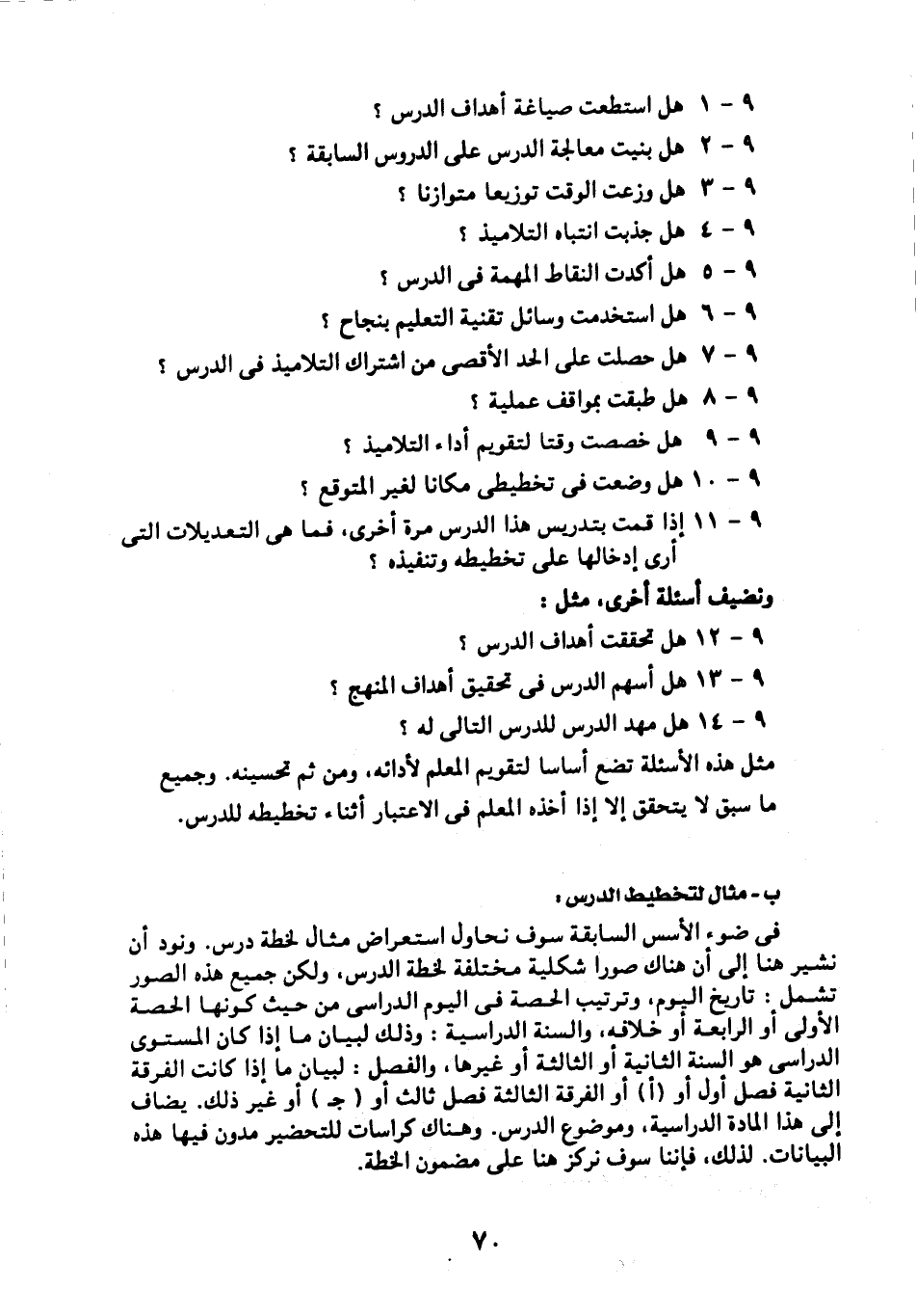 مثل هذه الأسئلة تضع أساسًا لتقويم المعلم لأدائه، ومن ثم تحسينه. وجميع ما سبق لا يتحقق إلا إذا أخذه المعلم في الاعتبار أثناء تخطيطه للدرس.