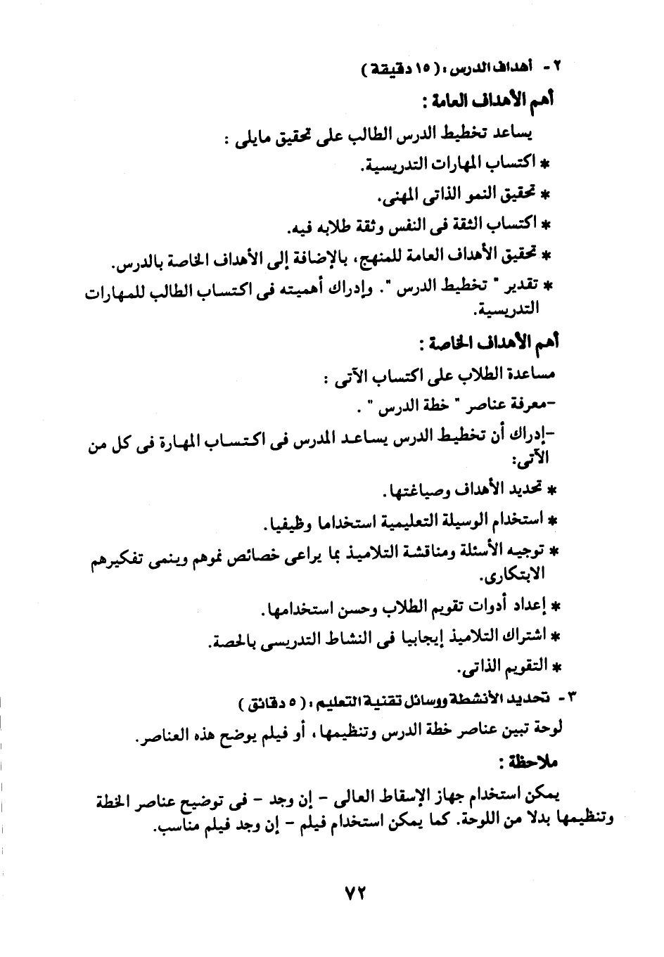 - إدراك أن تخطيط الدرس يساعد المدرس في اكتساب المهارة في كل من الآتي: